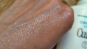 ケアセラとキュレルを伸ばしてみましたが、どちらも伸びが良くて塗りやすいです。 ケアセラはぷるっと柔らかく広がり、キュレルは軽くてスッとなじむ感じでした。